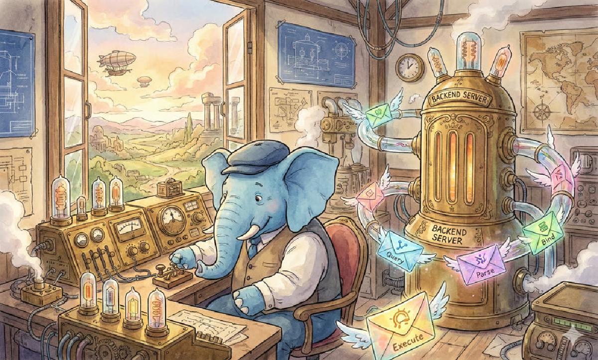 The above are the two main events in connection establishment process. Other events include authentication messages AuthenticationXXX (R), backend key messages BackendKeyData (K), error messages ErrorResponse (E), and a series of context-independent messages (NoticeResponse (N), NotificationResponse (A), ParameterStatus(S))