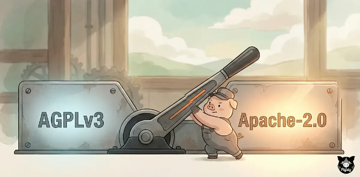 也正好借这个发布窗口,我把一件惦记很久的事落地了:把 Pigsty 的许可证从 AGPLv3 改回 Apache 2.0。