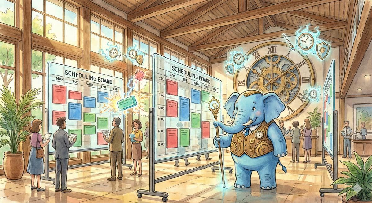 );这里EXCLUDE USING GIST(room_id WITH = , range WITH &&)指明了一个排它约束:不允许存在room_id相等,且range相互重叠的多条记录。